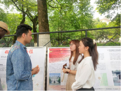 师生踊跃举办迎接建党100周年活动。“译术行者”学生团队结合此前湖北红色景区英译现状调研成果,设计制作中英文双语展览,在校内开展红色景点推介主题活动,吸引了广大师生特别是来自多个国家留学生的驻足思考与热烈交流。