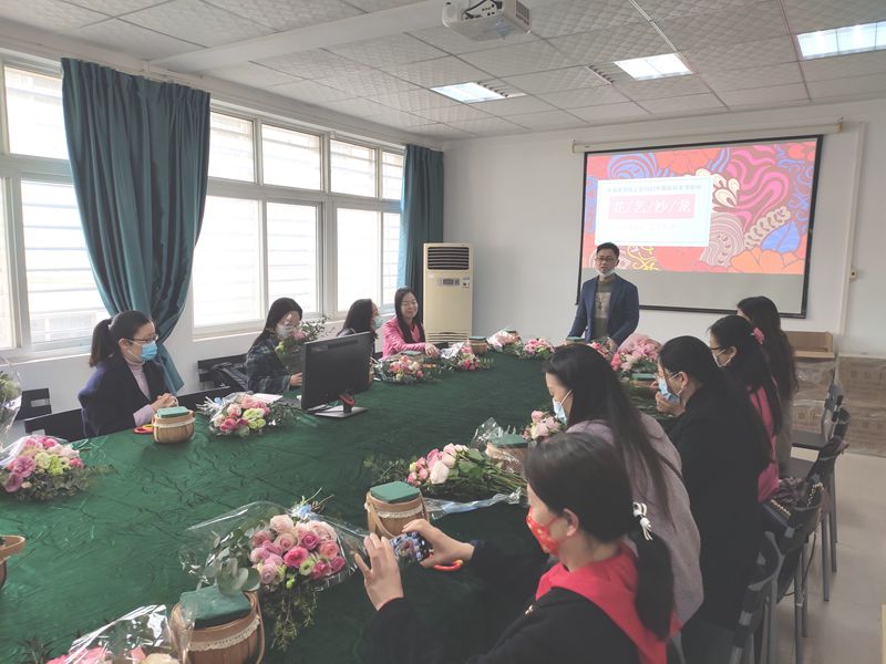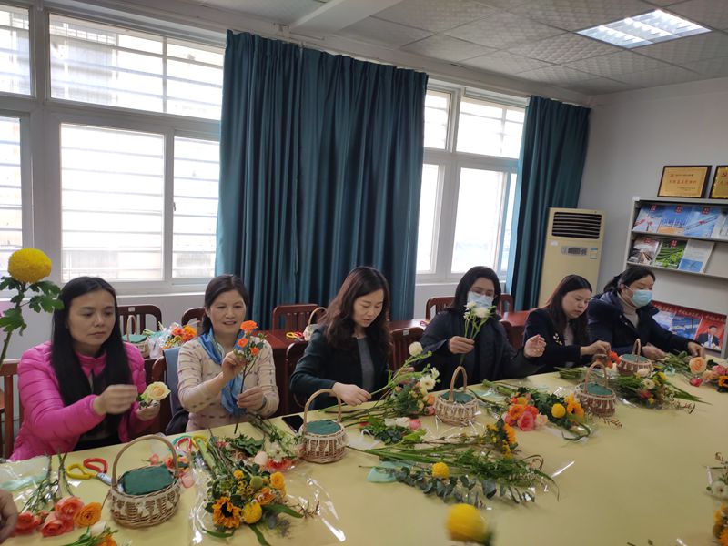 分工会在北一楼举办了庆祝“国际三八妇女节”系列活动之手提花篮制作。活动中,花艺师首先给老师们讲解了花卉常识,插花技巧,花篮养护小窍门等,然后指导大家动手插花。