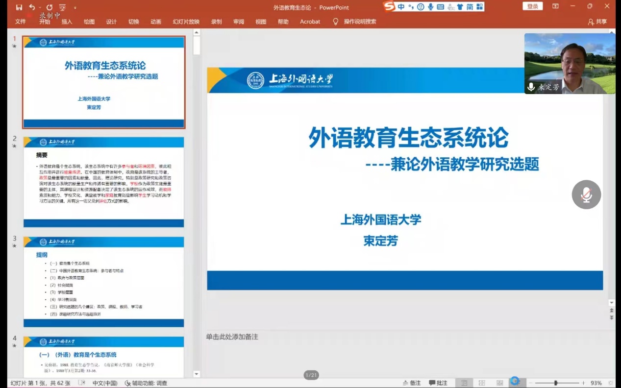 “南望今声”系列讲座如期举行。上海外国语大学大学博士生导师束定芳教授应邀在线上为91吃瓜