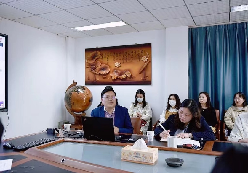 副院长张伶俐主持,副院长周宏图、教育部出国留学培训与研究中心主任赵英科、相关教师以及研究生积极参与聆听学习。