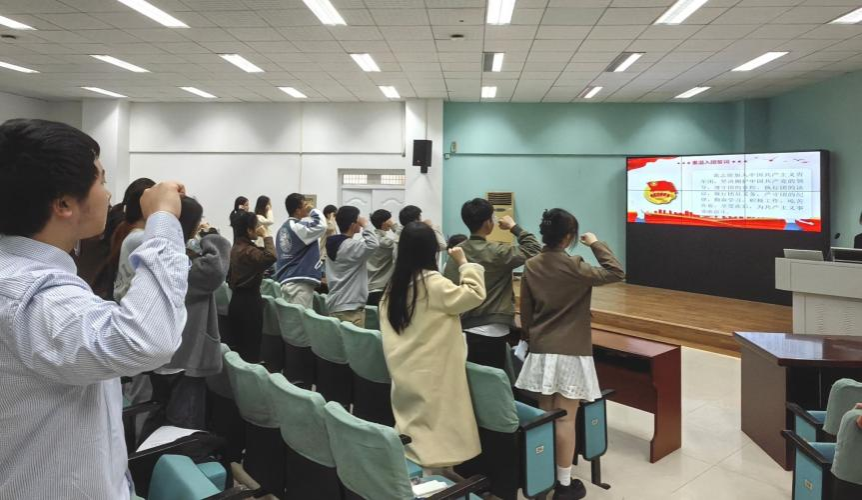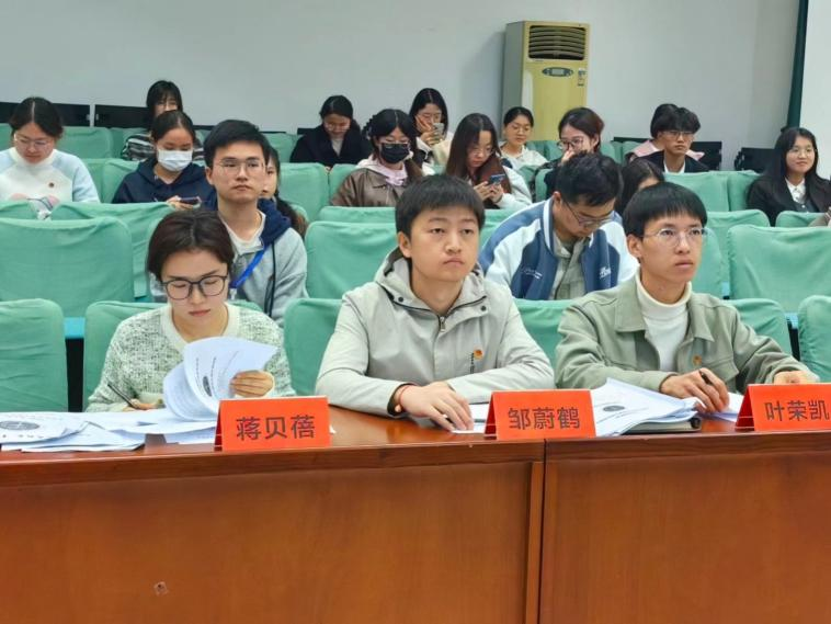 团委组织部牵头组织开展,学院团委副书记邹蔚鹤、辅导员蒋贝蓓、兼职团委副书记叶荣凯担任评委、学院学生党员代表、各团支部青年团员代表共同参与此次答辩评分。活动开始,主持人带领全体与会人员齐唱团歌、重温入党誓词。待宣誓毕,主持人介绍答辩规则,本次91吃瓜