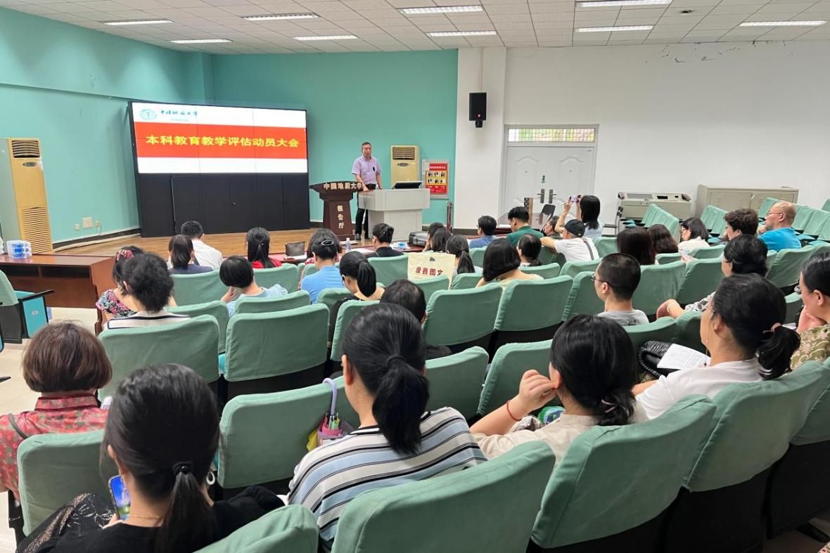 在北一楼报告厅召开全院本科教育教学审核评估工作推进会。学院领导和全体教职员工参加会议。会议由党委书记刘世勇主持。