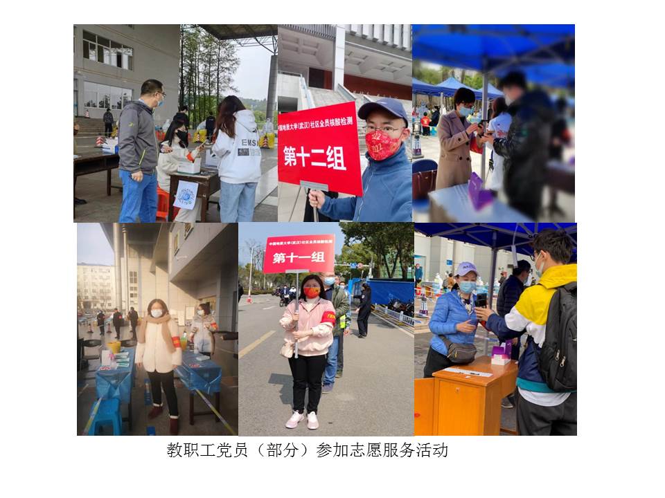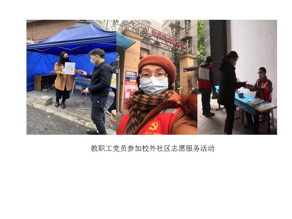 党委积极响应学校党委号召,组织教工党员参加疫情防控,党员干部带头,党员们积极行动,踊跃报名,发挥党员先锋模范作用,为学校筑牢校园平安防线。截至4月24日,共计100余人次参加核酸检测等志愿服务,累计服务时长达350余小时。其中孙来麟、李孝奎、周艳、俞仑燕、戴薇、董成见、宋干锋、王国念、刘敏、赵英科、张莉等同志多次参加校内疫情防控志愿者工作,为广大师生做出表率。